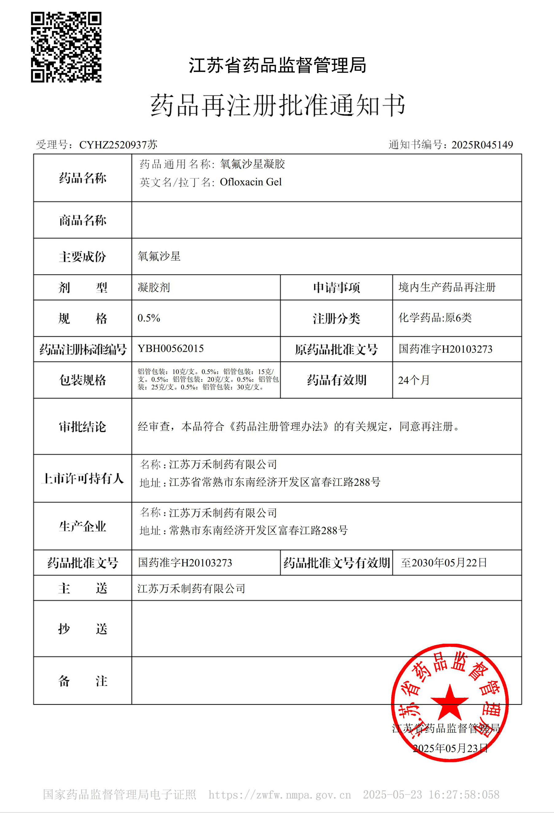 氧氟沙星凝胶
